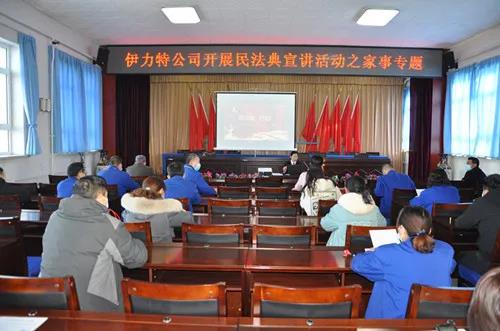 12月16日下午,伊寧墾區人民法院副院長尹素梅、72團司法所所長嚴風猛來到伊力特公司,就民法典中與員工生活息息相關的法律條例進行了宣講,在伊力特公司四樓會議室,來自機關及